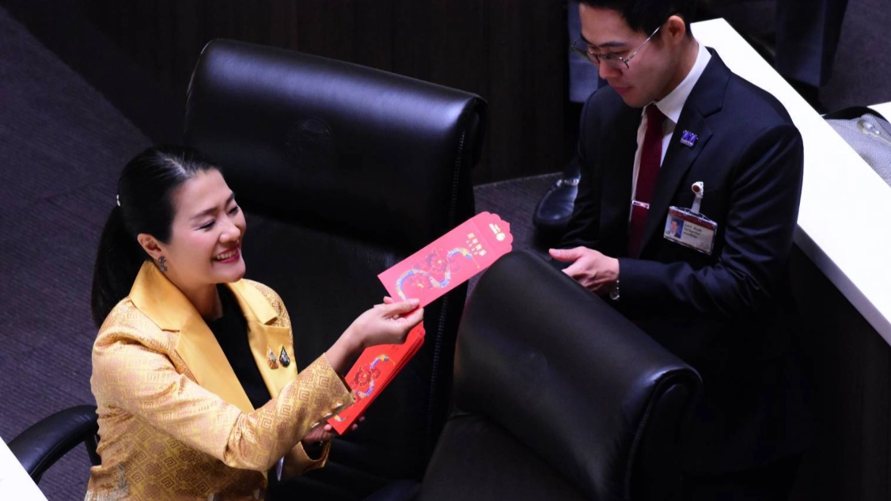 รมช.มหาดไทย “ธีรรัตน์ สำเร็จวาณิชย์” นำซองแดงอั่งเปา เดินแจก สส. กลางที่ประชุมสภาฯ เนื่องในเทศกาลตรุษจีน ปี 2568