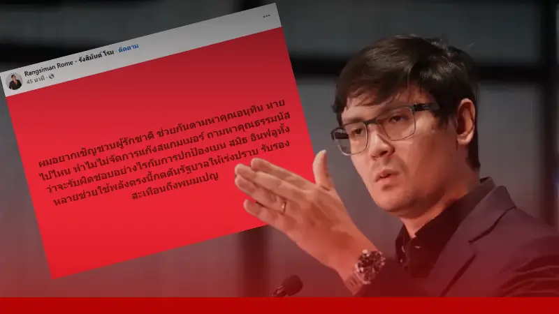 โรมระบุว่า “สหรัฐเขย่ารังสแกมเมอร์ เกาหลีใต้เอาจริงส่งกำลังมาลุย แต่ประเทศไทยกลับอยู่เฉยไม่ทำอะไร ทั้งที่มีพรมแดนติดกับกัมพูชา ซึ่งเป็นฐานใหญ่ของกลุ่มนี้” พร้อมทิ้งท้ายด้วยข้อความเสียดสีว่า “ฝากใครช่วยตามหาคุณอนุทินด้วยครับ ว่าหายไปไหน”