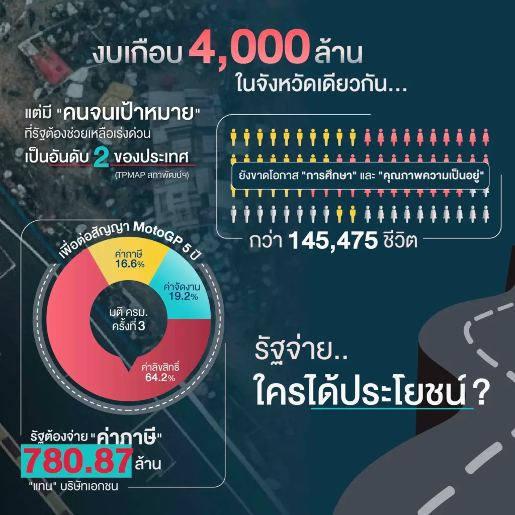 ทวีย้อนลำดับการสนับสนุน MotoGP ของรัฐตั้งแต่ปี 2561 พบว่า งบประมาณเพิ่มขึ้นต่อเนื่องถึง 8 เท่า