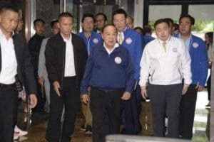 ผู้สื่อข่าวถามถึงกระแสข่าวว่าพรรคประชาธิปัตย์จะเข้าร่วมรัฐบาล นายภูมิธรรมกล่าวว่ายังไปไม่ถึงขั้นนั้น ยังอยู่ที่ตรงนี้ ทั้งหมดที่จับมือร่วมกันยังจับมือกันอยู่หรือเปล่า เหลือพรรค พปชร.ที่ยังไม่ชัดชัดเจน ขณะนี้ต้องเอาให้ชัดเจนว่าจะยังเป็นพรรคเดียวกันหรือไม่ และเราพอใจกับเงื่อนไขที่ยื่นมาหรือไม่ เราก็จะเสนอให้ชัดเจน